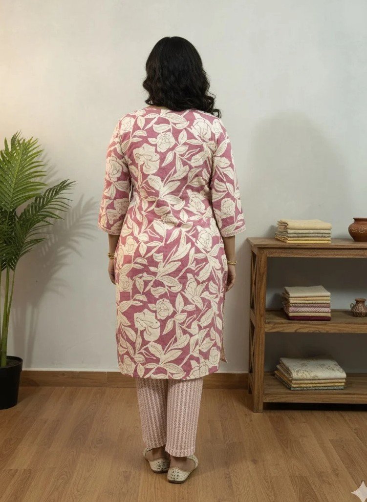 Step into effortless style and comfort with our Beautiful Pink Embroidered Regular Fit Kurta with ankle-length pants, designed for the modern woman who values both fashion and functionality. This chic ensemble features a soft, breathable top paired with ankle-length pants that come with practical side pockets for added convenience. Made from Rayon fabric, it ensures all-day comfort with no shrinkage , maintaining its perfect fit and shape wash after wash. Ideal for casual outings, travel, or relaxed workdays, this Kurti-set offers a sleek, contemporary look that keeps you feeling confident and comfortable.